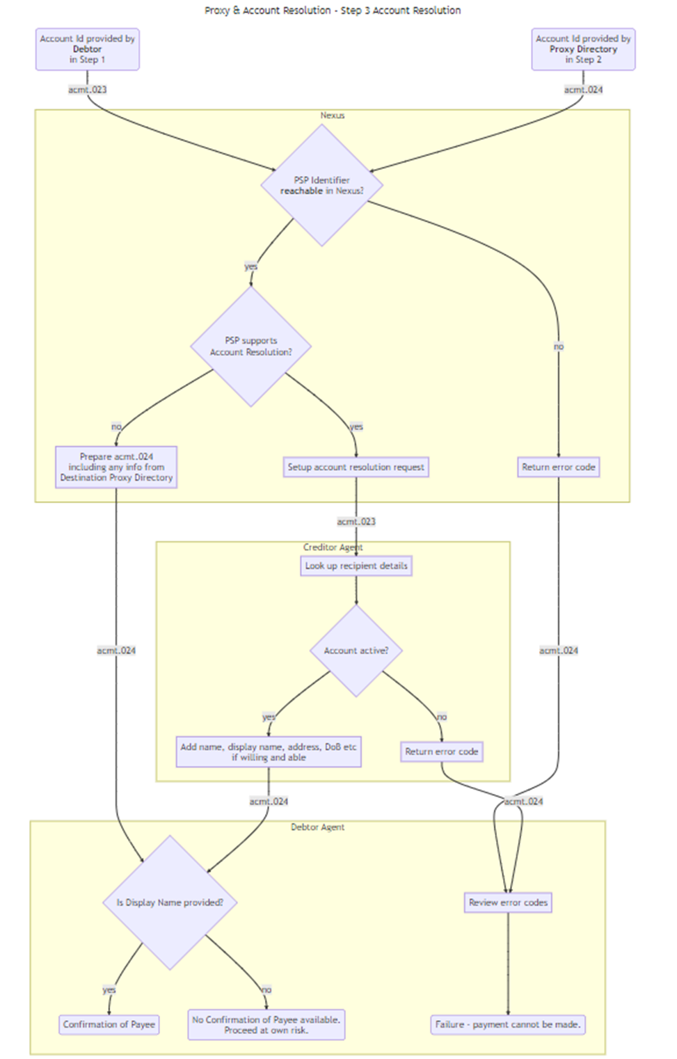 * If the Sender originally provided a proxy, Nexus will forward the `acmt.024` that was received from the Destination Proxy Directory in [Step 2](https://docs.nexusglobalpayments.org/addressing-and-proxy-resolution/proxy-and-account-resolution-process/step-2-proxy-resolution-messaging-sequence)